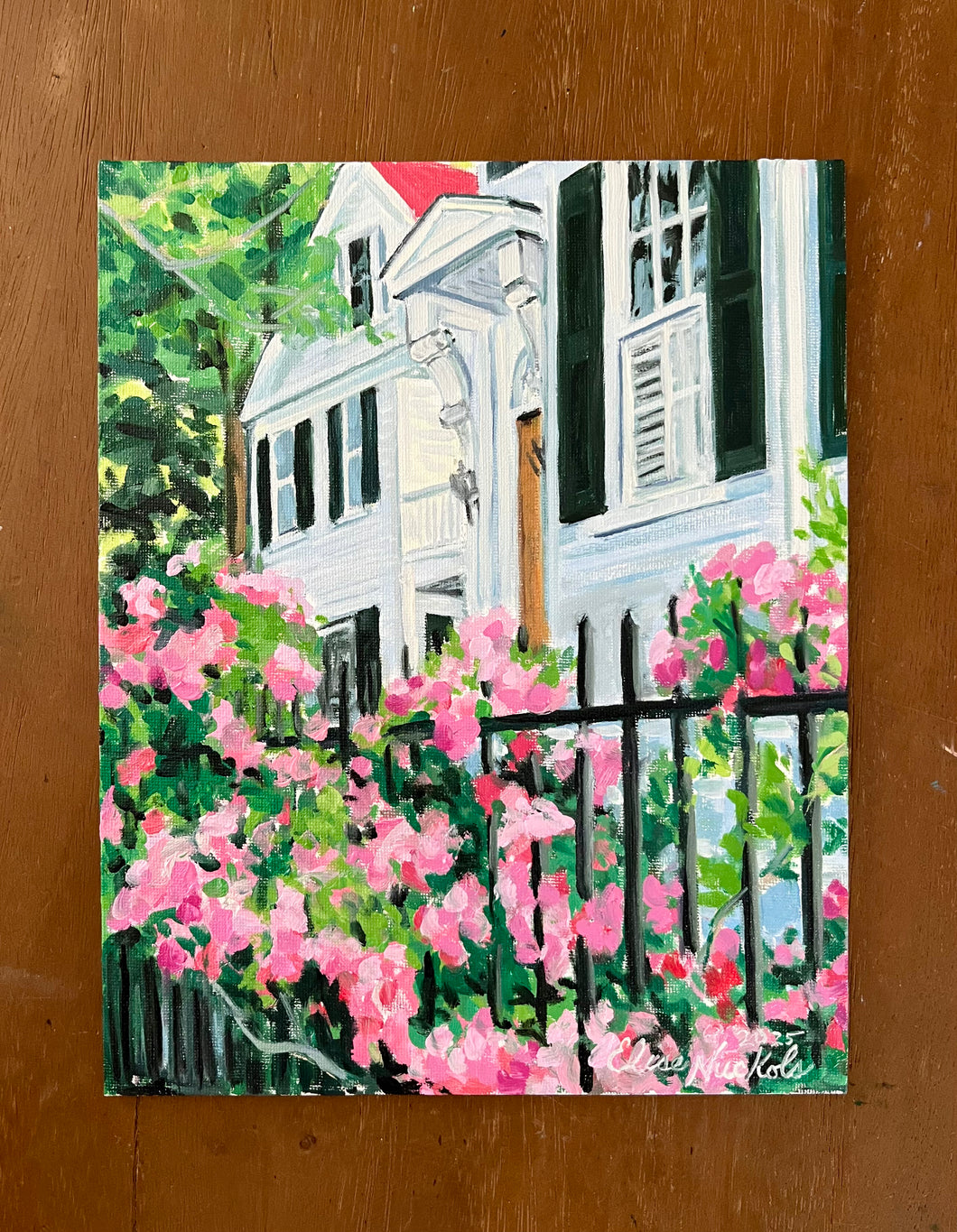 This is an original oil painting on a flat canvas panel.