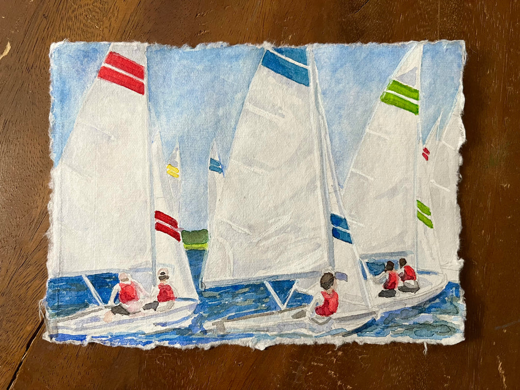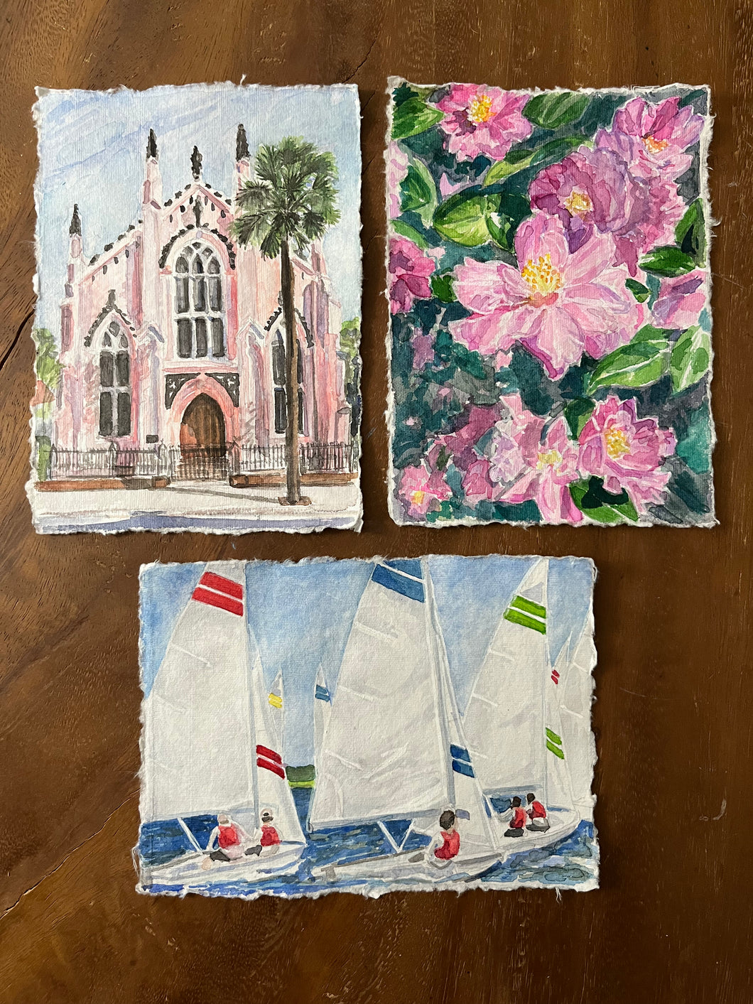 This painting is made with watercolor on heavy, hand pressed, deckled-edged watercolor paper.