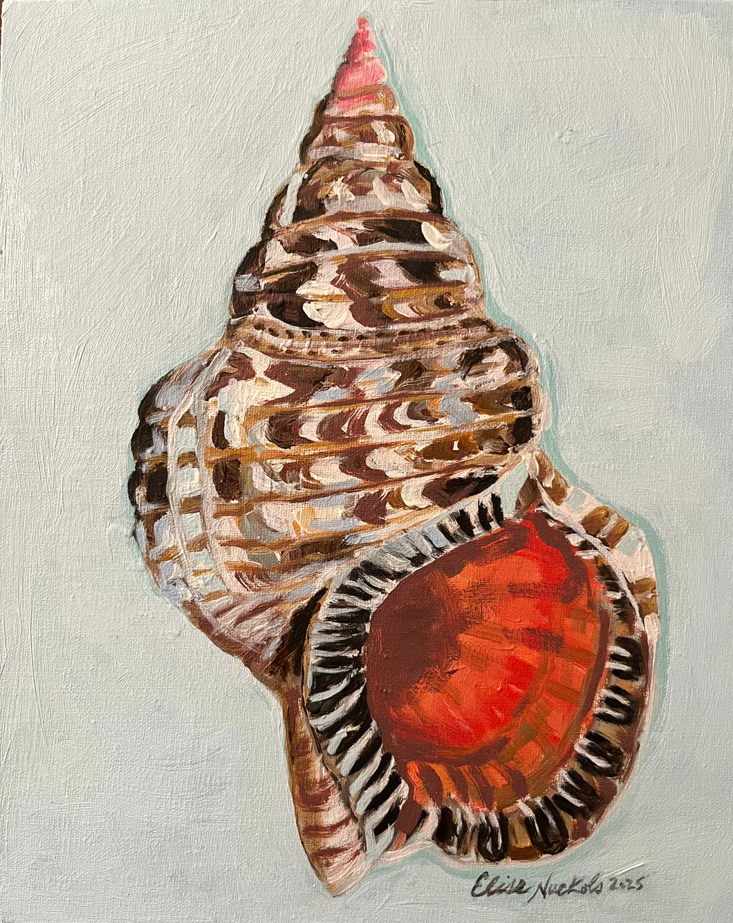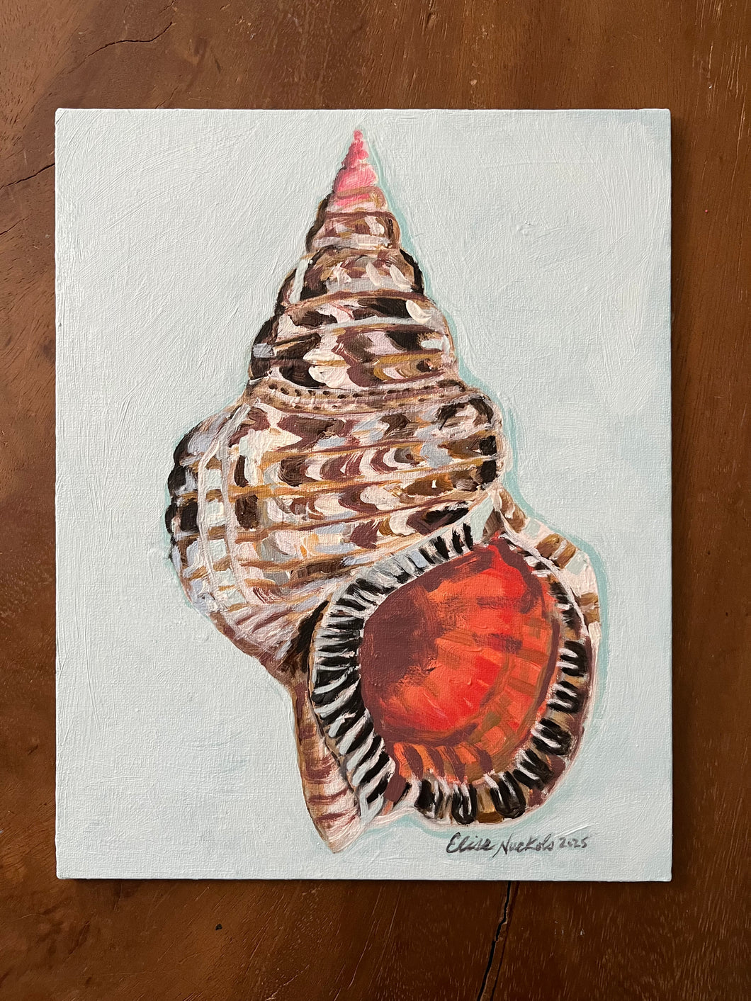 This is an original oil painting on a flat, linen covered panel.